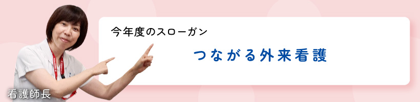 1日約750人の患者さんが来院されます。外来通院中の患者さんは、自宅で生活されている「生活者」であることを念頭に置き、より良い在宅療養の支援を目指して、地域の医療機関と連携を図り、患者さんの思いを傾聴し、継続した看護を実践しています。
