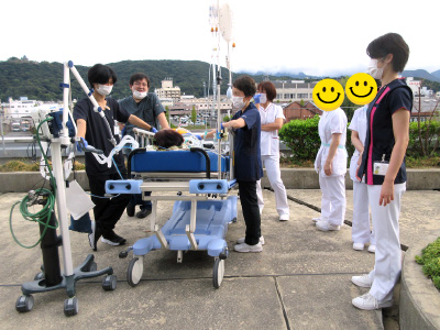 急性期から患者家族のQOLを低下させないクリティカルケアを実践しています。患者の生命を守ることを第一に、安心して治療が受けられるように看護ケアを行っています。ICU入室患者さんを対象に早期社会復帰を目指し、早期離床リハビリ、早期栄養介入し、多職種チームで取り組んでいます。