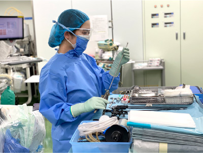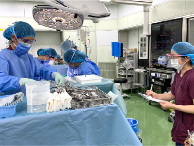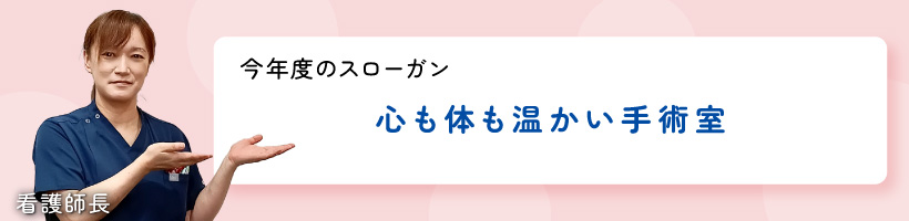 13診療科で年間約3,500件以上の手術を行っています。年間手術件数のうち1/3が緊急・臨時症例です。2次医療圏域内で唯一の公立総合病院として急性期医療に対応していく役割を担っています。患者さんと接する時間は限られていますが、予定手術・緊急手術にかかわらず、手術を受ける患者さんやご家族の方に安心して、安全・安楽な手術を提供する事をモットーに、術前・術中・術後の看護に取り組んでいます。